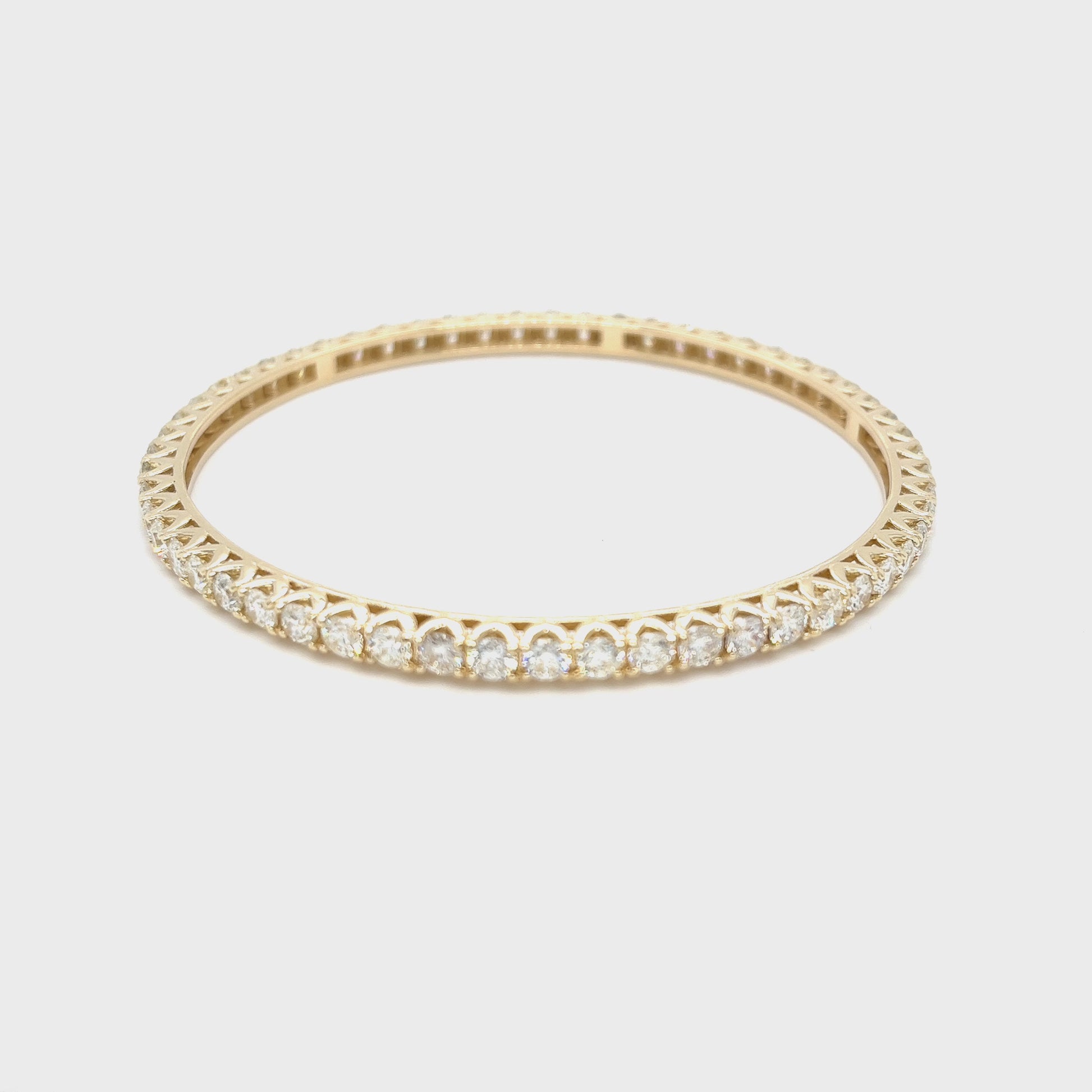 Introducing our exquisite collection of Round Lab Diamond Bangles – a perfect blend of timeless elegance and modern sophistication. Crafted with precision and passion, each bangle in this collection is a true masterpiece, designed to add a touch of glamour to any occasion. Diamond wt.7.5-8 cts in 14 kg ,Diamond size 3.2 mm .Special order 7-10 days delivery .