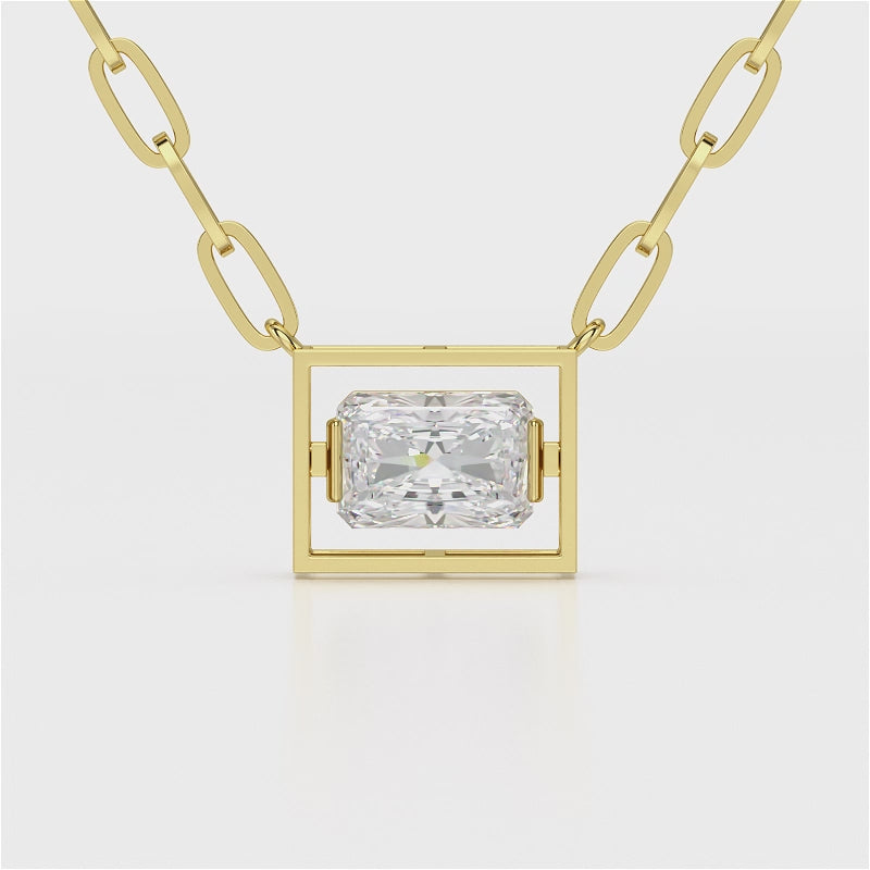 Celebrate the essence of love with our exquisite collection of lab-grown solitaire Radiant-shaped necklace in a 18 inch or 16 inch paper clip chain in 14kyg. Crafted with precision and passion, these timeless pieces are the perfect expression of your deepest emotions. Embrace the beauty of sustainable luxury and let your love shine bright this Valentine's Day.